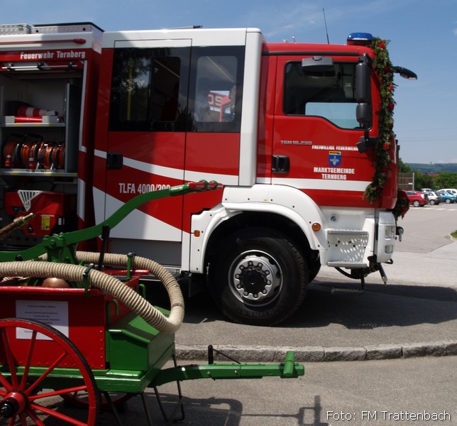 Der 5. Juni 2011 war ein großer Tag für unsere Kollegen der FF Ternberg: Ihr neues Tanklöschfahrzeug TLF4000 wurde seiner Bestimmung übergeben. Wir empfingen um 9.15h die Feuerwehrkameraden vor der Kirche und geleiteten sie zum Festgottesdienst. Unser Doppelquartett gestaltete die Messe mit wunderschönen Klängen. Im Anschluß ging es im großen Festzug zum Feuerwehrdepot mit dem schön geschmückten Fahrzeug. Dechant Mag. Fritz Lehnhart segnete das neue Fahrzeug. Hier schlossen sich verschiedene Redner mit Glückwünschen und Grußworten an: Bürgermeister Steindler, Landtagsabgeordnete Weichsler-Hauer, der neu bestellte Landesfeuerwehrkommandant Kronsteiner, HBI Ritt Josef und die Raiba Ternberg mit einem Spendenscheck. Danach gings ins Zelt und wir unterhielten die Gäste mit unseren Frühschoppenklängen. Den gemütlichen Ausklang gestalteten die Ennstaler Bergzigeuner.