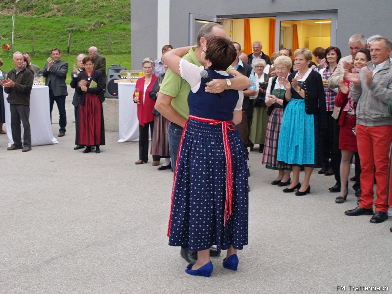 Heute feierten wir mit unsere Obfrau ganz groß! Helga hatte zum Fest geladen und wir folgten ihrer Einladung sehr gerne und sehr zahlreich. Den Auftakt gaben wir, ihre Kapelle, mit der Firgur "Rose" - geformt aus uns Musikern mit klingendem Spiel. Wir wurden hervorragend bewirtet mit einem Menü aus Kartoffelsuppe mit Lachseinlage und Rinderrouladen - besonders gefüllt und liebevoll garniert. Im Anschluss war ein traumhaftes Kuchenbuffet aufgebaut. Im Verlauf des Abends stellten sich immer wieder Grantulanten ein - allen voran ihre Kinder mit besonderen Geschenken, weiters u.a. die FF Trattenbach, die Kreativgruppe, der Hochzeitschor, dem Kirchenchor und noch viele, viele weitere mehr. Und wie es sich für besondere Ereignisse gehört feierten wir mit Helga ausgiebig bis in die frühen Morgenstunden. Es war ein rundum gelungenes, feines und stimmungsvolles Fest!