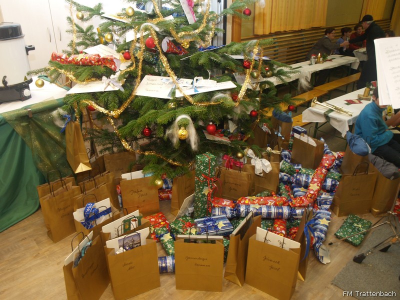 Heuer feierten wir unseren Jahresabschluß im Musik-Veranstaltungsheim der Volk(s)schule Trattenbach. Es gab alles was das Herz begehrt: Glühmost am Eingang vorm Feuerkorb - wunderschön geschmückter Christbaum mit eine riesigen Anzahl von Packerln darunter - hervorragende Einstimmung unserer Jungmusiker - ein tolles Buffet! Das Geschenk unserer Musikmänner an uns Damen (Poloshirt in rot mit Musiklogo bzw. Schal mit Musiklogo) und das Geschenk der Musik an alle Musikerinnen und Musiker in Form des heuer im Sommer aufgenommenen Gruppenbildes, durfte sich jeder im Saal unterm Christbaum nehmen. Ein toller Abschluß eines sehr ereignisreichen Jubiläumsjahres im feierlichen Rahmen!