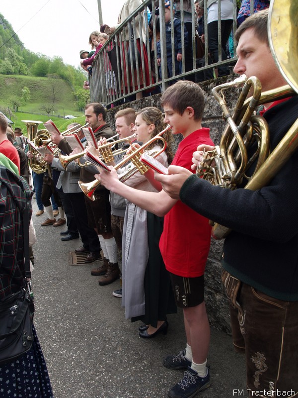 Auch heuer begannen wir unser Fest am 1. Mai mit dem traditionellen Maibaumaufstellen. Dank tatkräftiger Unterstützung vieler Hände stand unser Maibaum nach kurzer Zeit an seinem Platz. Im Anschluss wurde das Bildungshaus Trattenbach offiziell seiner Bestimmung übergeben. Wir umrahmten mit unseren Klängen den ersten Teil dieses Tages. Wir luden unsere Gäste zur 5. Trattenbacher Schmankerlraos ein - wieder mit Köstlichkeiten aus unseren Trattenbach-Kochbüchern, gekocht in Trattenbacher Küchen. Um 14 Uhr durften wir Musikerinnen auf den Laufsteg und eine Reihe wundervoller Dirndlkleider, alle aus der Werkstatt von Karin Brandstötter, vorführen. Der Höhepunkt war dann die Präsentation unseres neu kreierten "Feiteljanker" für die Männer als perfekte Ergänzung zum "Trattebacher Dirndl". Danach klang der Tag beim gemütlichen Beisammensitzen aus.