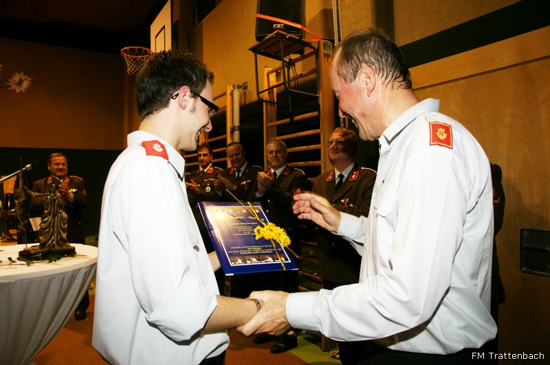 Kommandant der FF Trattenbach, Peter Minoth, überbrachte nicht nur die Gratulation für Karl sondern hat sich in die Chronik eingelesen und fand weitere Feierpunkte: 10 Jahre Obfrau Helga Reisinger und 10 Jahre Stabführer-Duo Josef Johanek-Alexander Weigner.