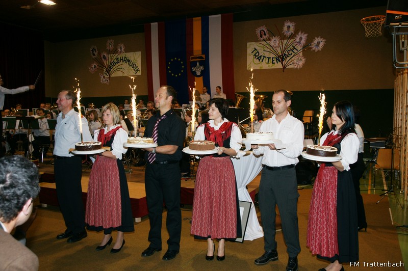 Wir steuerten auf den von uns mit Spannung erwarteten Höhepunkt hin: Unsere Gratulation und unser Dank für unseren Kapellmeister Karl! Die Laudatio hielt Helga Reisinger. Aus unseren Reihen trat danach Christoph Huber mit seinem und unserem Geschenk vor: Mit dem von ihm selbst komponierten"Karl-Weigner-Marsch", den wir im Anschluß uraufführten! Dazu kamen 5 Torten mit Feuerwerk in den Saal!