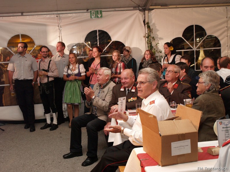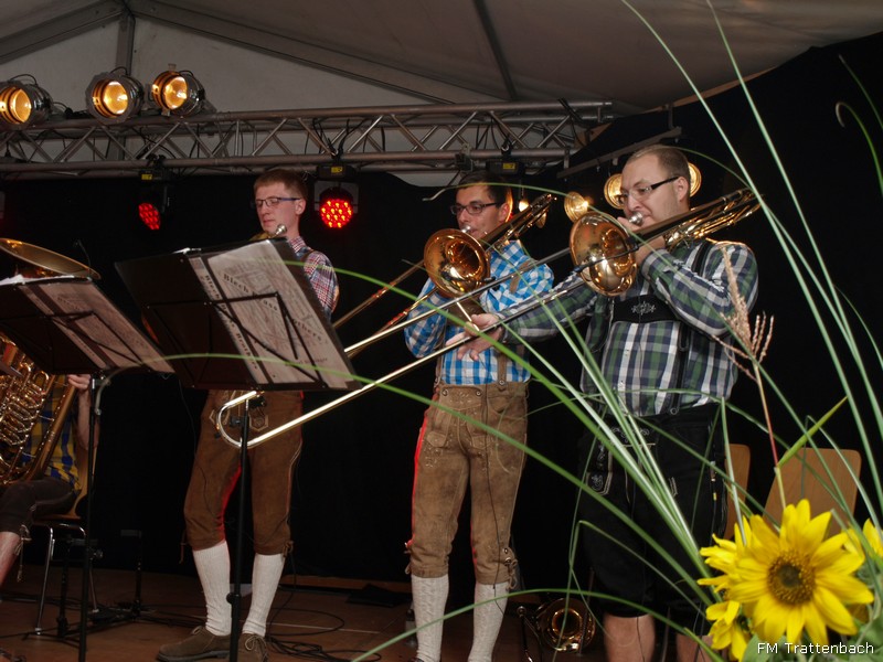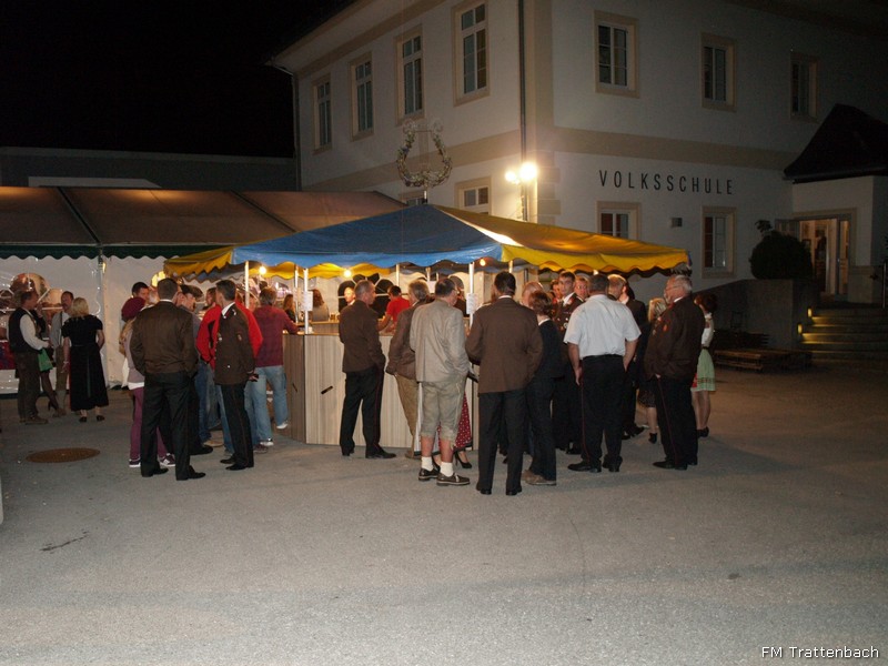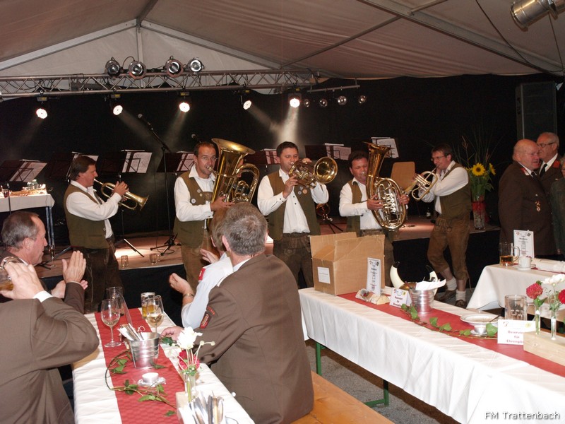 Im Anschluss an den Festakt "130-Jahre Freiwillige Feuerwehr Trattenbach" fand der "Bunte Jubiläumsabend" statt. Hier spielten im Wechsel die Gruppen "Mostviertler Blechmusikanten" und die "Blech Brass Brothers" - diese beiden Gruppen ergänzten sich bestens und unterhielten uns und unser Publikum ganz hervorrangend. Heute war der Wettergott wieder auf unserer Seite und ein milder Abend lud zum Verweilen im Zelt aber auch an der Seidlbar neben dem Brunnen ein. Unsere Gäste konnten sich am bereitgestellten, reichhaltigen Buffet mit Köstlichkeiten aus Trattenbach - von der Gulaschsuppe über verschiedenste Salate und Aufstriche, panierte Putenschnitzerl, Gemüselaibchen, Hendlpfanne, Blunzngröstel über die dazugehörigen Beilagen bis hin zum traumhaften Nachtisch und hervorragenden Mehlspeisen - so richtig gut gehen lassen und mit uns bis in die Morgenstunden ausgiebig feiern. Ein rundum gelungener Abend!