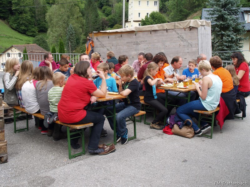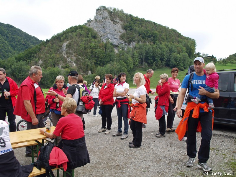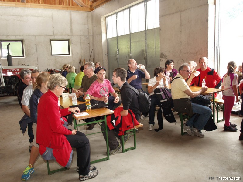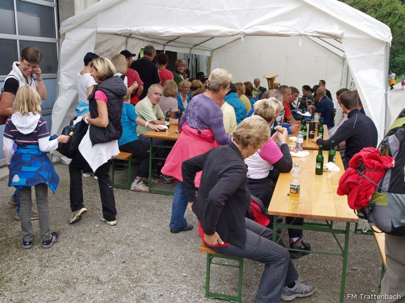 Und noch ein Höhepunkt! Um 9.30 Uhr begrüßten wir mit Musikklängen und Sonnenschein unsere Wanderlustigen und begleiteten sie damit ein Stück des Weges. Über die Forststraße Riesenkogel ging es rauf in den Trattenbach - hier konnten die Wanderer entscheiden ob sie gleich zu der Labstelle Kienauer gehen oder noch höher hinaus wollten. Beim Bauernhaus Sulz war die 2. Labstelle eingerichtet. An beiden Orten wurden die hungrigen und durstigen Wanderer mit Musikklängen und Verpflegung empfangen. Danach gings weiter ins Ziel am Ortsplatz in Trattenbach im Festzelt. Hier standen natürlich wieder viele selbstgekochte und selbstgebackene Köstlichkeiten bereit. In diesem Rahmen feierten die WSV-Damen 40-Jahre-Turnerinnen. Um 15h wurden die Preise vergeben für die weitest angereiste Gruppe, die größte Gruppe und der jüngsten und des jüngsten Teilnehmers. Danach ließen wir dieses tolle und traumhafte Wochenende gemeinsam mit unseren Gästen ausklingen.