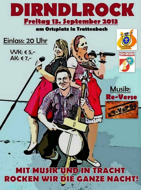 Unsere jungen Musiker warfen sich mächtig ins Zeug und organisierten "ihren" Abend ganz ausgezeichnet. Unter dem Titel "Mit Musik und in Tracht rocken wir durch die ganze Nacht" stand Live on Stage "Reverse" - die Band entstanden aus unserer Kapelle. Leider spielte an diesem Abend das Wetter nicht ganz so gut mit jedoch war es ein sehr gut besuchter Event und alle unterhielten sich ganz prächtig bis in die Morgenstunden. Bilder folgen.