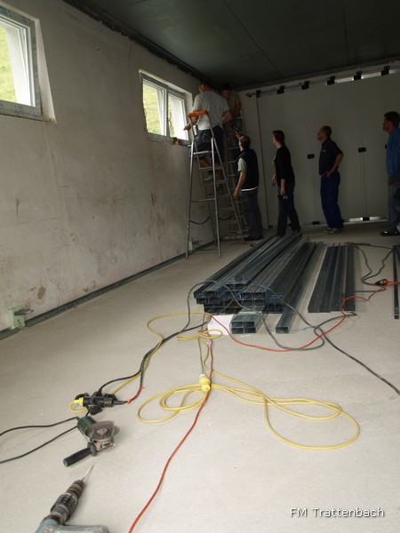 Am 7. Mai 2011 gings los mit unserem Umbau! Nach dem Abbau der Sproßenwand und dem Abdichten Richtung Turnsaal begannen unsere Musiker mit Schremhammer mit dem Durchbruch. Auf den ersten Bildern seht ihr das Ergebnis.